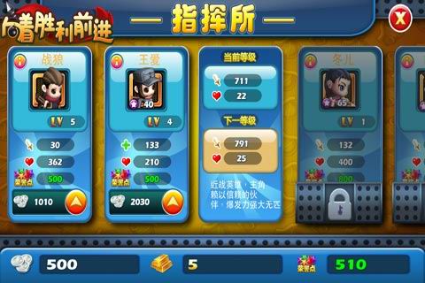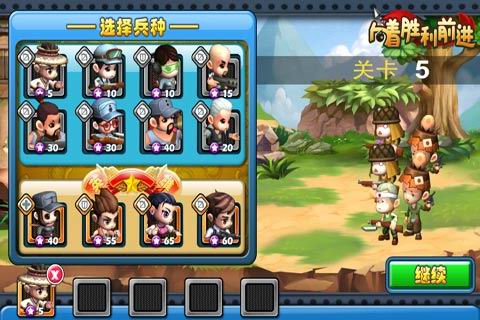 《向着胜利前进》是由北京稻草熊科技有限公司集结游戏精英,倾力打造的一款玩法新颖、画风清新,集休闲、塔防、策略于一身的手机游戏。玩家对主角进行操控来攻破各种日本兵、忍者、相扑手等组成的日军部队,保卫家园。游戏中极大还原了《向着胜利前进》的电视剧情、经典人物,他们都能够响应玩家的召唤来合力攻破日军的防线。