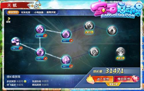 不同于其他的网页游戏,中卓《宝石总动员》中的天赋系统在延续传统的玩法设定上与冥想相结合,打造出一种新奇、另类的创新玩法。学习天赋可大幅增强角色各种属性,当玩家等级达到20级、进行1场小鸡快跑战斗后即可解锁,解锁后还有5000成长值、9个突发令牌、1个冷却球等你来拿哦!解锁奖励每个玩家只能领取1次,不领取奖励则无法进入天赋界面。好东西当然要抢,怎会有不拿之理?丰厚奖励开抢咯!