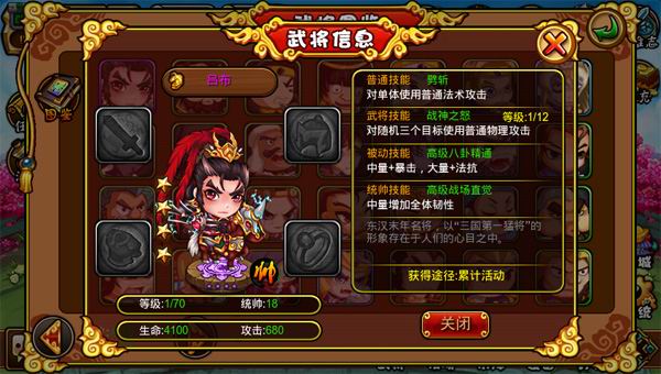 c. 吕布(骁骑):普攻:劈斩、武将技:战神之怒-对随机三个目标使用普通物理攻击