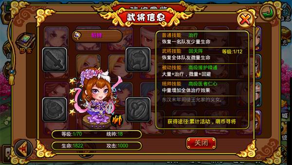 b. 貂蝉(方士):普攻:治疗、武将技:回天阵-恢复全体队友微量生命