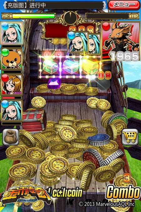导 读: | 由推出过《胧村正》、《牧场物语》等经典主机作品的日本知名跨国游戏集团MarvelousAQL制作的卡牌游戏《金币传奇》,将现有的卡牌战斗形式、规则和操作推翻,首次将街机推币机玩法 |