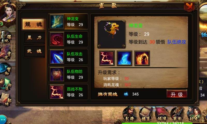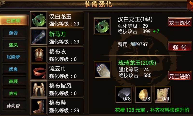 玉龙作为玩家的一件装备,能给玩家的绝技增加攻击,但与其他装备不同的是它可以进行炼化。在玩家收集完炼化需要的材料之后就可以通过炼化来提升主角和武将的各项属性了。当然,关键材料的获得并不容易,获得的途径会有所限制,因此需要玩家经常去神秘商人那里光顾一下,看看有没有什么新的发现。另外,萌宠也是必不可少的。灵兽神龙不仅外形可爱,聪明活泼,而且拥有强大的技能,在战斗中能够给予你重大的帮助。相信有它的陪伴,你一定不会觉得孤单。