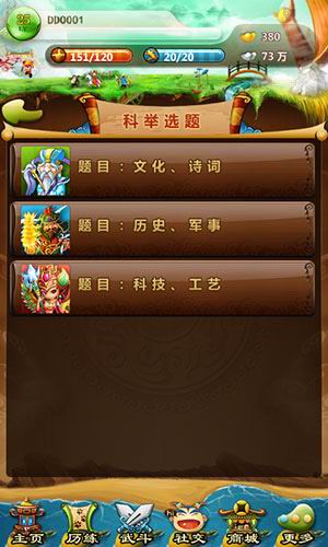 科举:类似有奖问答的玩法,可获得丰厚的奖励。