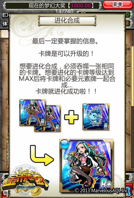 《金币传奇》是日本著名跨国游戏集团MarvelousAQL开发的一款集合街机推币机、策略卡牌和冒险RPG的创新型移动游戏,国内由上海通耀信息科技有限公司独家发行运营。《金币传奇》采用现代日式动漫画风,将流行的卡牌策略战斗融入经典的街机推币机,创造卡牌游戏全新的战斗形式和操作体验。《金币传奇》有数百个造型各异的动漫风卡牌角色,全部卡牌都可通过强化进化获得属性和外观的全面进化,满足玩家的战斗和收集需求,玩家可以参与冒险剧情任务,不断发现更多金币的奥秘。