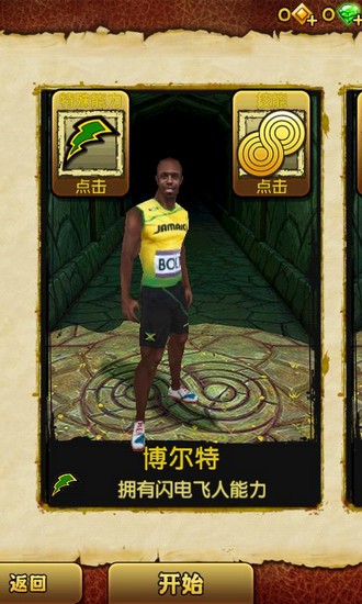 《神庙逃亡2》博尔特1.3版自上线以来,每日下载量过百万,博尔特这个新加入的人物角色更是人气爆棚。博尔特的特殊能力非常有意思,激活他的能力后,你将获得一个短暂的磁力护盾,这时你将变得无敌,自动奔跑,并且可以吸收金币,是名符其实的“闪电飞人”技能。