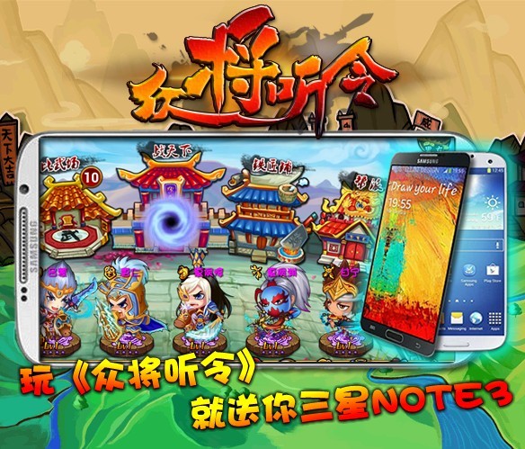 9月11日内测启动开始,官方将在每天登陆《众将听令》的所有用户账号中抽取一名幸运玩家,送出一部价值5000余元的三星NOTE3。《众将听令》项目组表示只要玩家的热情高涨,就坚持每天1部的送下去哦。由于三星NOTE3于今日刚刚发布,正式上市预计为9月下旬,所以得奖玩家可能还是需要等一等才能拿到,不过官方保证,只要一上市,一定为我们《众将听令》的玩家抢到第一批货。每天官方将在游戏公告,官网以及论坛等发布获奖信息。