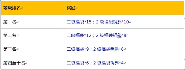 【活动内容】活动截止时间,在游戏内“等级”排行榜保持在前10名的玩家,可获得奖励。