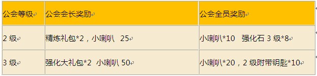 活动期间内:公会等级达到活动要求,都可以获得如下奖励!