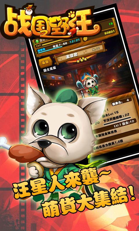 看到一个一个萌系指数爆表的汪星人,你是不是很想把它们全部收入囊下呢?有着这样的收集强迫症是非常好的,因为你到大神的时刻也指日可待了!《战国之野汪》的汪星人卡牌的获得可以从战场、求才这两种方式获得。战场就是做完主线任务等副本后有几率免费获得卡牌,当然,有些难过的关卡可以得到援军的协助哦;而求才中的招食客可是玩家获得高级卡牌的重要手段,切记切记!