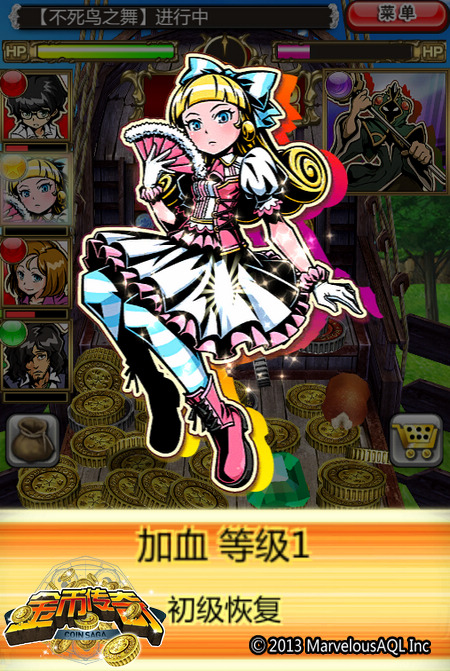 《金币传奇》是日本著名跨国游戏集团MarvelousAQL开发的一款集合街机推币机、策略卡牌和冒险RPG的创新型移动游戏,国内由上海通耀信息科技有限公司独家发行运营。《金币传奇》采用日式动漫画风,将流行的卡牌策略战斗融入经典的街机推币机,创造卡牌游戏全新的战斗形式和操作体验。《金币传奇》有数百个造型各异的动漫风卡牌角色,全部卡牌都可通过强化进化获得属性和外观的全面进化,满足玩家的战斗和收集需求,玩家可以参与冒险剧情任务,不断发现更多金币的奥秘。