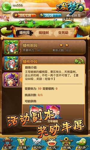 蟠桃园:可以获得千年蟠桃和万年蟠桃,卡牌升级的必需品。