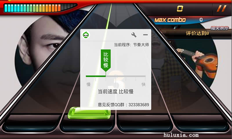 然后我们把速度滑块调整到“比较慢”的档位,然后再最小化“葫芦侠修改器”继续进行游戏,就会发现游戏的音符下降比原来慢了很多,所以我们可以慢慢的把每一个音符都打到perfect。
