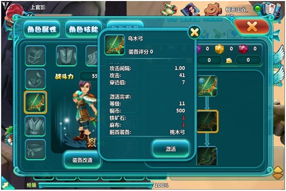 在游戏中,不断累积材料,等凑齐材料后可以通过装备树来激活这些装备。拥有一件好的装备,那自然是狂拽帅气吊炸天。
