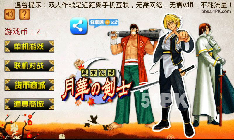 51PK即时对战游戏将包括《拳皇97》、《合金弹头》、《街头霸王》、《三国志》在内的18种红白机游戏移植到安卓平台上。除了将游戏操控改为触屏以外,还加入了免费联网对战的模式,小伙伴们只需要点击【联机对战】,创建主副机网络,无需网络,不用wifi,0流量就能和小伙伴们一起追忆曾经“热血对战”的青葱岁月!