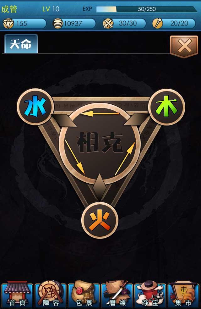 《魔姬》卡牌天命摒弃了复杂的五行之术,采用三命之术:水、火和木。水克火,火克木,木克水,相互制衡,两两相克。天命玩法的加入,丰富了卡牌的内容,使玩家战斗过程不再枯燥乏味,更讲究卡牌策略上阵,做到以弱克强,击败比你更强大的敌人。
