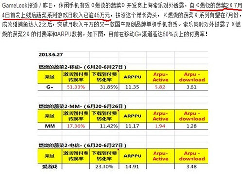 GameLook报道:《燃烧的蔬菜2》7月4日安卓首发上线后蔬菜系列游戏日收入已逾45万元!