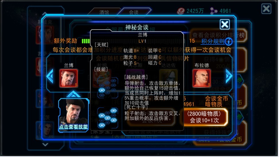 星舰战队曾是第一宇宙“乌托尔”主力守护舰队,兰博曾服役于星舰战队多年,经历最正统的军事培训,终极大招有效的交叉攻击敌人,造成额外的反应伤害。突如其来的的灾难改变了很多人的命运,兰博也在其中。退役后兰博加入佣兵团,多年在战争中的洗礼使他比常人更加沉稳和机敏,现为雇佣兵团主要战力。