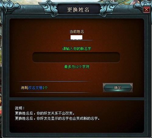 办理改名业务前,你需要做好两手准备。其一,在【商城-虚空宝物】中购买【改名文册】。持有该文册,才说明当今圣上承认你现在的名字很难听很难看、拿不出手,特此批准你改一个不有辱圣听的名字来。有了许可,户籍官才会受理你的改名请求。其二,当然是构思一个足够响亮、足够好听的名字。一个好名字无疑可以让你一劳永逸,免得你经常出入太守府一次又一次地跟户籍官打交道。