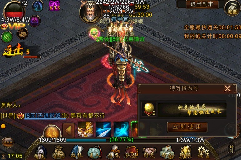 该副本存在时间为60分钟,进入所需最小等级为69级,每日手动挑战次数为1次,扫荡该副本不收取元宝,成为VIP玩家自然能享受每日3次的挑战。