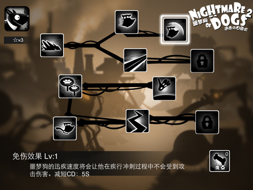 冲刺、跳跃、滑翔看似十分弱爆的基础技能遍地都是,怎么能算独门绝技呢?别忘了我们的小狗可是有技能树可以学习的,可以消耗技能点数对基本技能进行多阶段强化,一旦学满所有技能,小狗几乎可以变超人!哪怕遇见敌人也不怕不怕啦~游戏关卡中漂浮的小星星就是增长技能点数的关键。