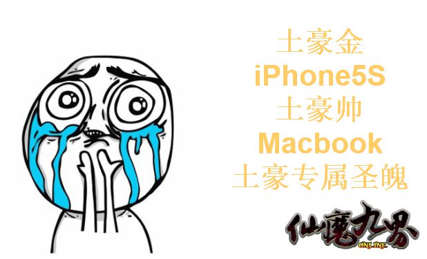 《仙魔九界OL》官方近日正式公布了新资料片“众生塔”即将上线,此消息一经发布就获得了广大玩家的关注,小编据可靠线人爆料,资料片将于国庆之后上线,国庆期间玩《仙魔九界OL》,有Macbook好礼砸土豪,有120级土豪专属七彩圣魄空降来袭,就是不知道有木有最近很热的土豪金iPhone5S。小编的心声,拿土豪金iPhone5S砸我吧。