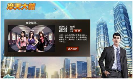 玩家通关【市场办公室】关卡后,就具备了进入摩天大楼的资格。摩天大楼是《商战创世纪》中精英云集的地方,汇集了来自世界各地的商界经营,堪称高端中的高端、大气中的大气。摩天大楼具有一定的难度,因为把守关卡的无不是来自各地的BOSS级人物,没有软柿子可以拣。
