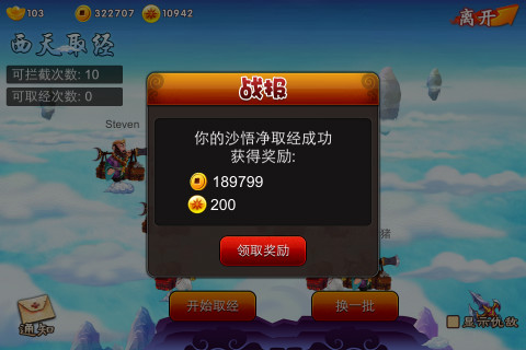 取经系统10分钟可以让你收获数额不菲的铜钱和境界点,每天有五次取经的机会,有5次免费刷新取经品质的机会但是铜钱和境界点的数额是由取经者决定滴,直接召唤大boss唐僧的话10分钟可是有上百万的铜钱和高达800境界点哦!ps:被打劫是不会损失境界点的!