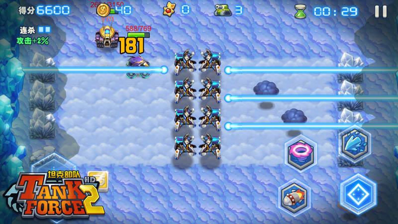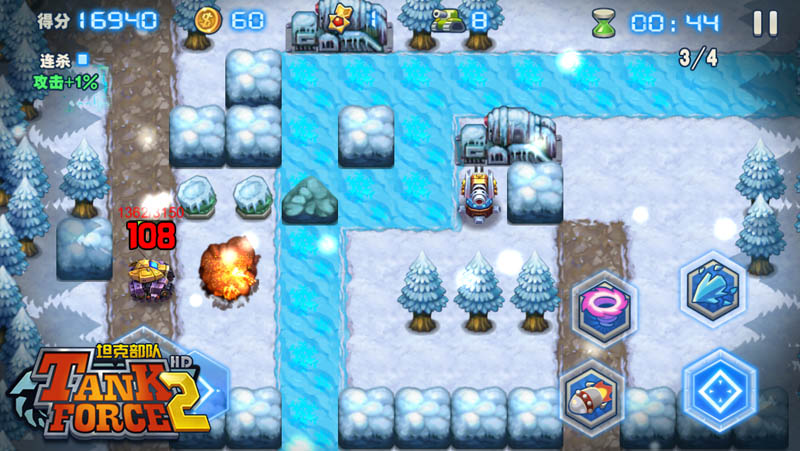 在雪域场景中,新增了被冰冻的河道这种地形,这个河道可是相当好玩!坦克在河道中既不能转弯也不能停止,只能像溜冰一样从这头溜到那头。所以走河道之前一定要想清楚,小心地滑没有回头机会哦!