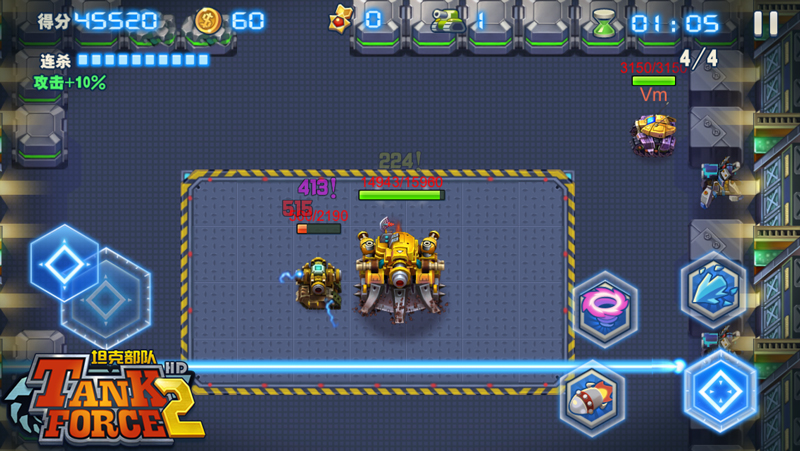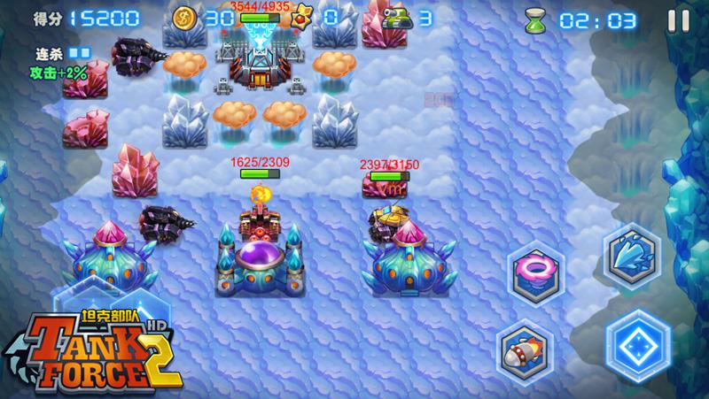 或者你也有这样的记忆?在敌方坦克就差一炮打爆你的基地的时候,你吃到了“手雷”或者“时间静止”的道具,让你能够干掉敌人成功过关,那种劫后余生的感觉想必也让你印象深刻吧!《坦克部队2》中的道具更加丰富,补血的、加防的、加移动速度的,还有道具能够用让你变成其他形态的坦克,随机刷出的道具让游戏更加具有偶然性,时刻都能带给你惊喜。