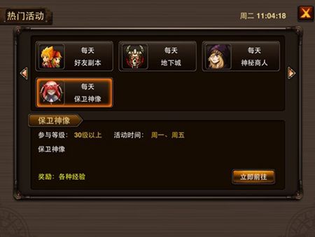 守护女神副本只在周一、周五两天开放。(别问其余五天女神去哪了!女神的世界我们不懂!)30级以上的朋友就可以进入副本,亲眼目睹女神的花容月貌了。
