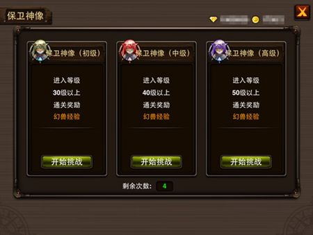 守卫女神之路肯定不会一帆风顺。一大波高富帅土豪都围着女神转呢。必须打退一切竞争对手,向女神展示自己的强大,才有可能虏获其芳心啊!守卫神像的每一波敌人都会配搭一只精英和BOSS级怪物,只要玩家挺过10波进攻浪潮之后就算挑战成功,并可获得大量幻兽经验。多好,人财都到手!