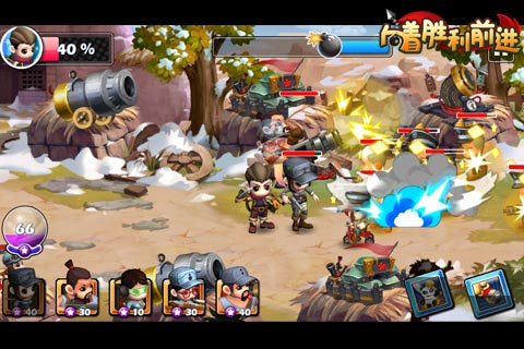 《向着胜利前进》是一款画面萌动可爱、玩法有趣的横版塔防类手游。在游戏中,讲述了以吴奇隆主演的战狼无意间帮助游击队战胜日军而加入游击队抗日的故事。剧情贴合原剧积极乐观的风格,营造了画面清新动感横版关卡氛围。