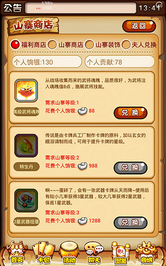 在山寨的内政堂中,可以进行内政任务,内政任务是为山寨提供升级和生产资源的主要方式。随着山寨等级提升,内政任务的数量和奖励内容也会发生变化,所以山寨成员们一定要齐心完成内政,让奖励变得越来越多。成员们获得的个人砖瓦,可以在福利堂中兑换各种物资,特别是可以兑换到个人所需的各种道具,千万不能错过。