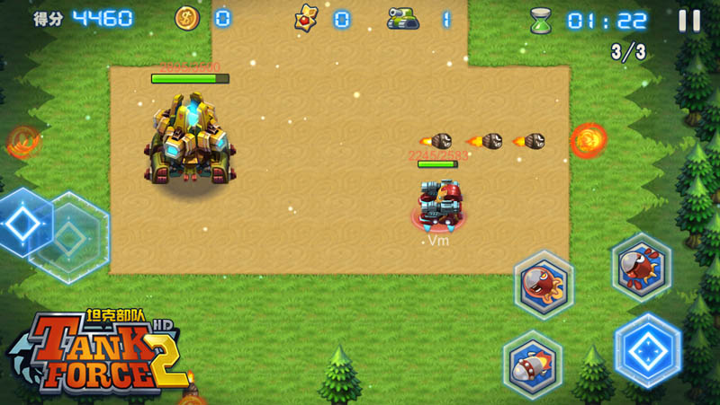 《坦克部队2》多达10位的坦克英雄各有绝学,比如这位钢铁侠,能够同时发射出两枚并排炮弹,也就意味着他的攻击范围要比别人大得多。这在直面BOSS的时候可是相当好用,钢铁侠可以与BOSS稍微错开位置,避开BOSS的直线火力,利用两枚炮弹的一侧攻击它。绝对称得上“两发炮弹就是爽”!