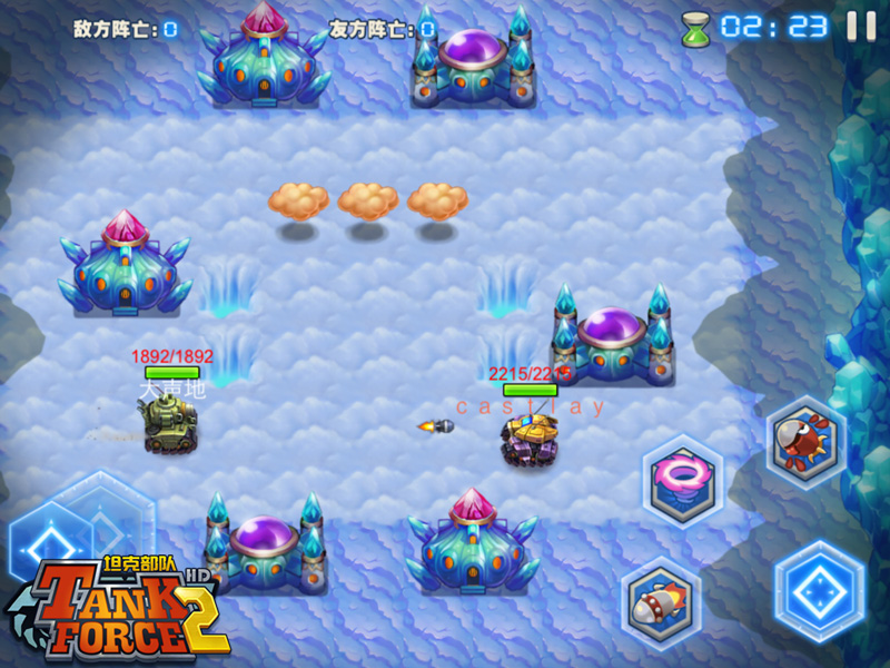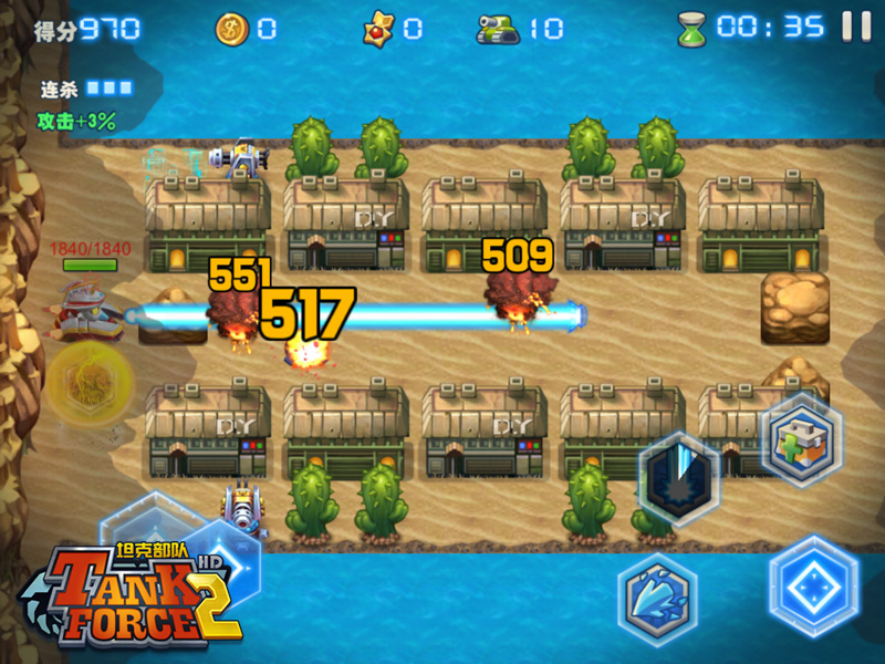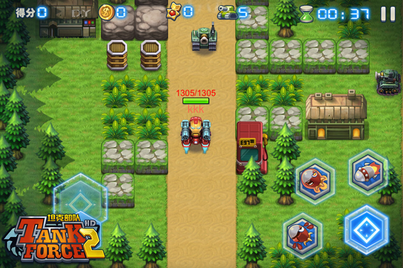 《坦克部队2》有八大场景地图,普通和精英两种难度模式,120个难度递增的关卡,让游戏比《坦克部队!》具有更强的可玩性。此外,《坦克部队2》中的NPC坦克具有更高的智能,在精英难度模式还会和你抢夺地图上刷出的道具。《坦克部队2》中每个大地图的最后一关都由攻击力和技能威力都相当变态的BOSS把守,想要完美通关,非常考验玩家的操作和走位。