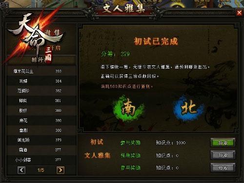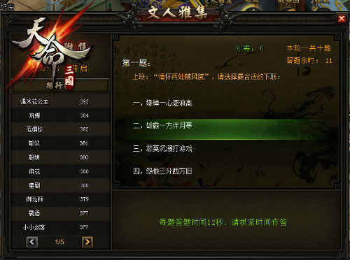 《天命三国》中有一个智慧答题的玩法—文人雅集。只要回答对了问题就能获得相应的知识点奖励。
