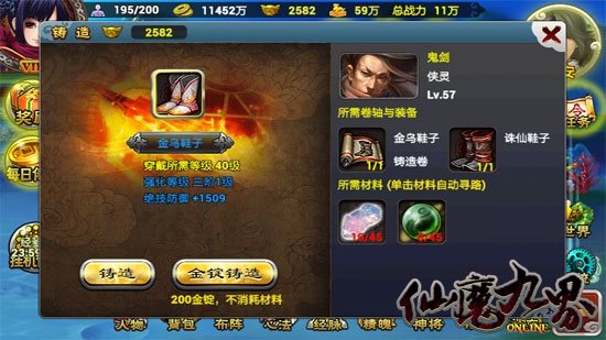 在这里可以将任意一件装备铸造成一件更具威力的神兵利器,大幅提升装备的基础属性。
