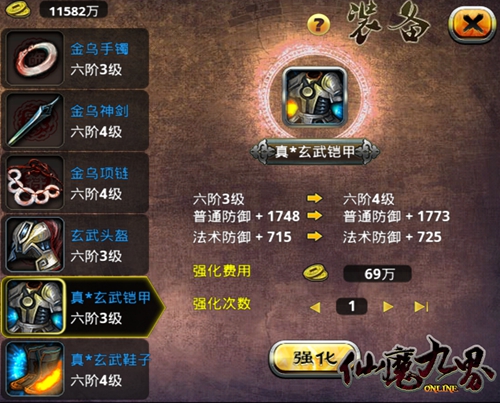 不同部位的装备强化时所需要的费用不一,合理根据伙伴的职业强化战斗中所需装备是明智的选择哦!《仙魔九界OL》打造中国风的仙侠手机网游,整个战斗过程无需任何操作,随时随地轻松畅玩游戏。
