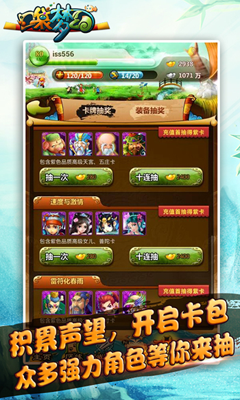 在游戏中,可以通过每日登陆奖励、师门任务、武神坛战斗、武神坛排名、给好友赠送礼物、主线3星通关获得声望。只要玩家们每天都把可以得到的声望尽量获得,抽到好卡指日可待。