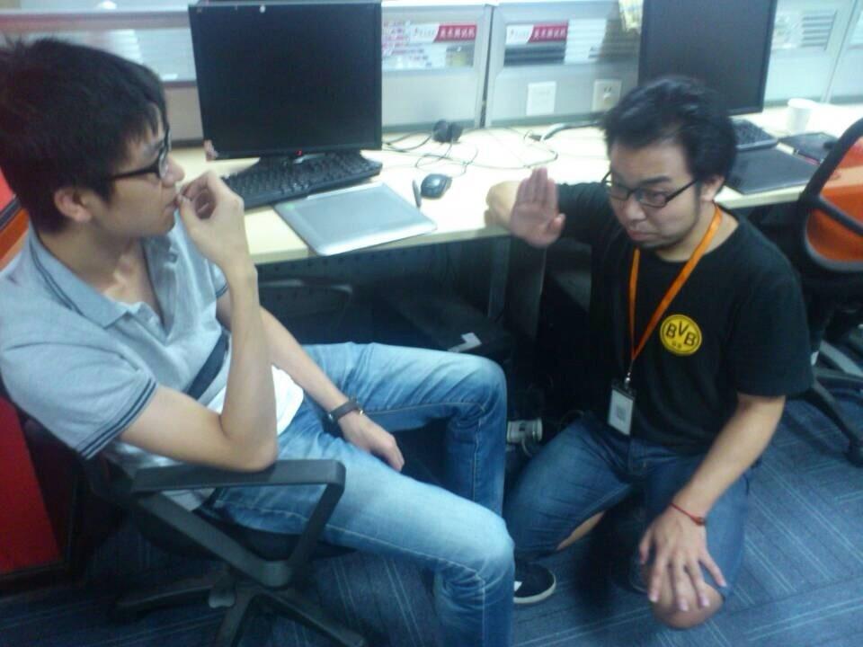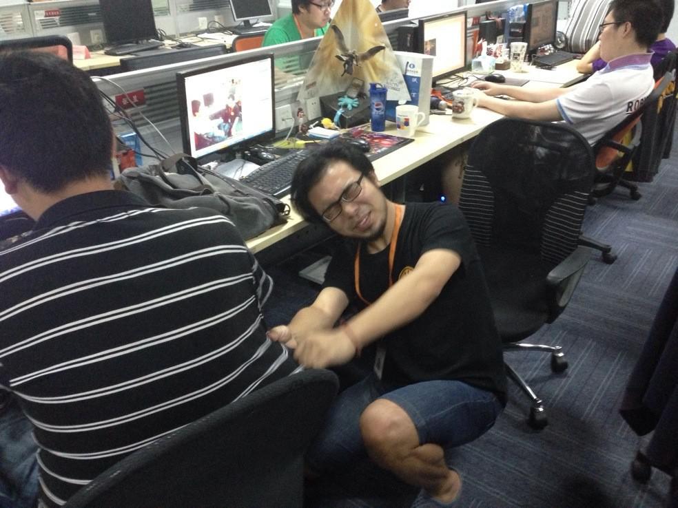 【小背】一款游戏的成功,肯定是策划、程序、运营、美术,整个团队集体的功劳。非常庆幸的是,我们《逆天仙魔录》有一只非常和谐年轻和有业界良心(笑)的产品团队,这里可以跟大家分享两张照片。分别代表了我与程序大神和运营大人之间的良好关系。