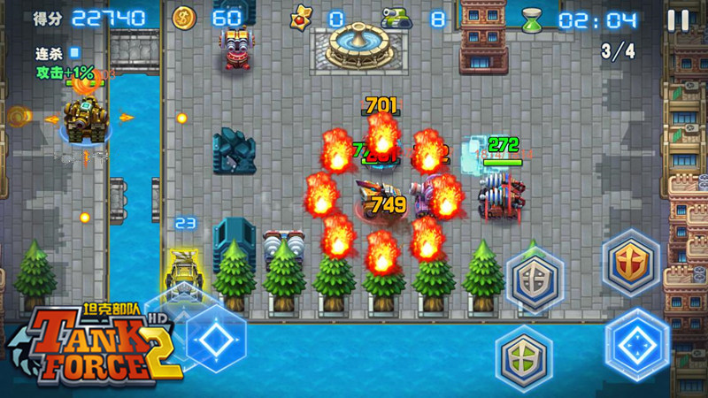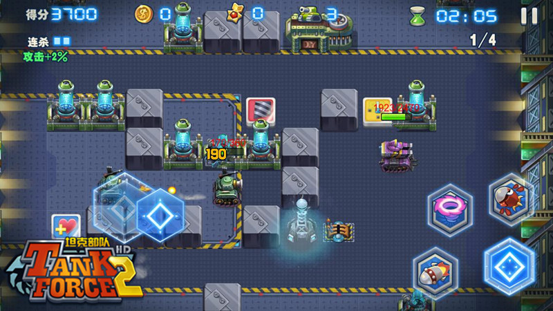 《坦克部队2》新增了许多奇特技能,还能对技能进行升级。玩家可以选择用着顺手的主动技能直接升级,也可以对被动技能进行改造。相比于原作,《坦克部队2》新增技能更加奇特,比如野蛮冲撞可以使敌人原地旋转,吸血导弹能够吸取敌人的血量补充自身等等。除了配件和技能,游戏还有另外一项设定:内核,可以直接增强坦克的攻防性能。特权礼包中的金币和勋章,就可以用来升级技能和内核,帮助玩家打造出最强大的坦克!