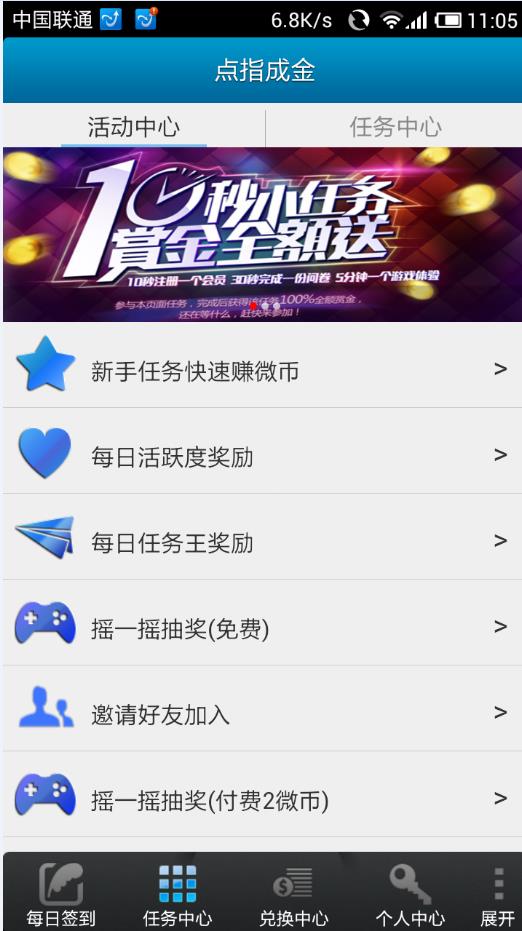 软件操作简单是很重要的,玩手机能赚钱应该是件轻松的事。这也是为什么点指成金才测试版,就吸引了很多用户下载体验,短短几天内用户手机注册量已过万。下载点指成金安装后,第一次获得积分,首次打开提示该应用的具体功能和说明,方便用户尽快上手操作使用,并进入体验签到状态,通过体验签到获得二次奖励,点积分支持是否签到模式,并且将任务与奖励区别开来,多样化的玩法很受欢迎。。。详细的操作指引,让大家很轻松的就可以在安卓手机上赚钱,积分处理上更是直接兑换能转到虚拟的Q币、话费,见得到的实惠才是最有说服力的,也是点指成金这款产品成功的卖点。