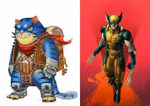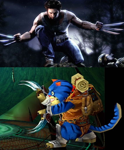 流浪武士和金刚狼这两位英雄,身体里都流淌着野性的血液。金刚狼罗根身为长有锐爪,同时具有惊人自我愈合能力的变种人,再加上狂野不羁的外形和性格,罗根早已不再是普通的人类,而可以称得上是一位十足的“狼人”。而流浪武士原本就是伊鲁瑟里亚大陆的特有种族——猫族的一员,同时具有猫的敏锐以及人的智能,同时还有超越常人和普通猫族的健壮身躯。自古以来就有猫狗不两立,金刚狼和流浪武士分别可以看做大狗和大猫,见面势必也会展开空前绝后的大战。狼人vs猫族,这就是兽性的对抗!