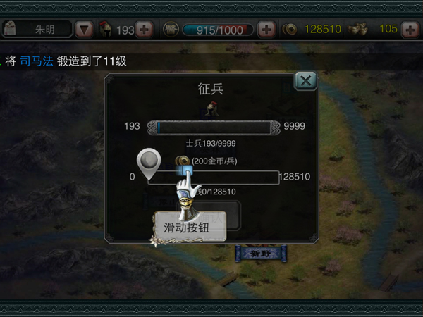 征战除了收获之外,必然也会有一定的损耗。这里的损耗分为两种,一种是武将的血气,血气在战斗结束后会自动回满,也可以使用医疗营迅速恢复。另一种是兵力的耗损,兵力可以通过征兵来获得,征兵需要消耗一定量的金币,所以获取足够的金币是强大兵力的重要保证。