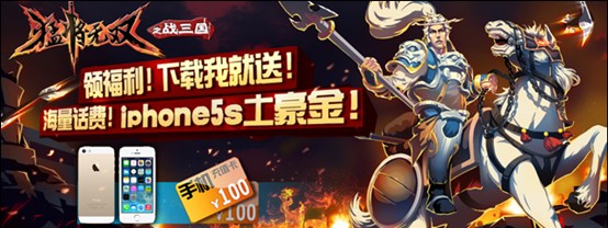 活动期间,凡是在《猛将无双之战三国》通关榜前11名的玩家,抽取一名获得IPhone5s土豪金手机一台,10人获得移动100元充值卡。