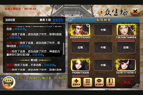 众生浮屠之塔中,队伍中每个成员可随时切换自己上阵的伙伴,而队长则可调整上场所有角色的位置,如何让自己的小队立于不败之地,这就要考验玩家的勇气与胆量。