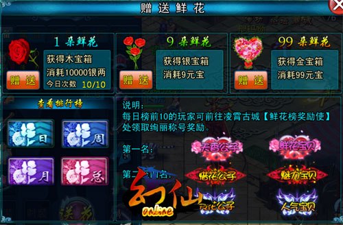 我们上下班坐公交的时间、睡前的无聊时间哪怕是上班偷懒的时间,都可以拿出手机来,去和自己心仪的人交朋友。那么当你喜欢上了对方却不敢直说怎么办?别担心,《幻仙OL》为您准备了“鲜花系统”,从一朵的一生一世,到9999朵的海誓山盟,您都可以送给对方哦,而且还能让全世界见证您的爱情呢!