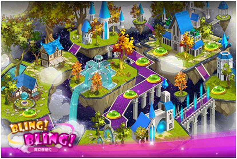 这是玩家进入游戏后的主界面,视觉上的第一感觉非常震撼,如同真?天空之城一般。盘旋的阶梯、错落的城堡与小屋、广场中心的蓝色瀑布,很有主城的气势,又不乏空灵梦幻。让小编很想立即滑动手指,到主界面去一探究竟。这么漂亮的主城,再难的任务也Hold住。