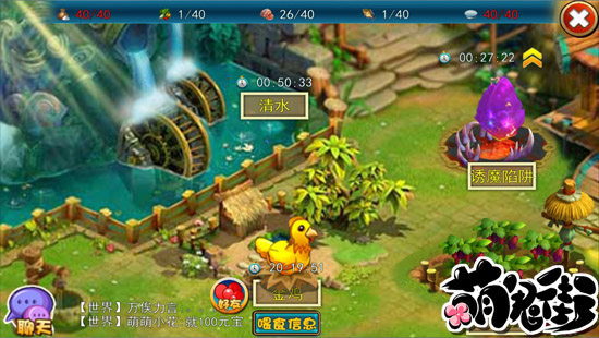 《萌鬼街》中世界聊天系统,每天都充斥着众多鬼友呼叫“求喂鸡”的信息~喂鸡需要加好友,我喂完你就要求你帮我回喂,于是大家在这样欢乐的氛围中逐渐熟悉,进而成为真正的好朋友~今天你帮人家喂鸡了不?`(*∩_∩*)′