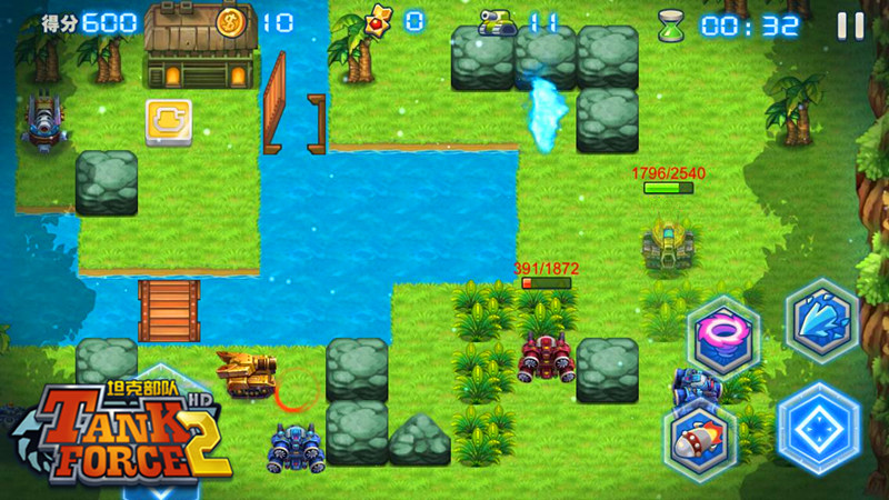 童年的17:30属于动画城,16:00属于大风车,而这之前的时间,恐怕都属于“小霸王”红白机了,还记得那时候就算憋着不上厕所也要和小伙伴一关一关闯下去的情景吗?《坦克部队2》延续了经典的闯关玩法,并将120道关卡分为特色鲜明的八大场景。丛林危机四伏、基地机关重重,海岛神秘莫测等等,其间充满各种陷阱、机关,比如会爆炸的油桶,会突然消失的木桥等等,更有神秘关卡等你去发掘,闯关路上激情不断!